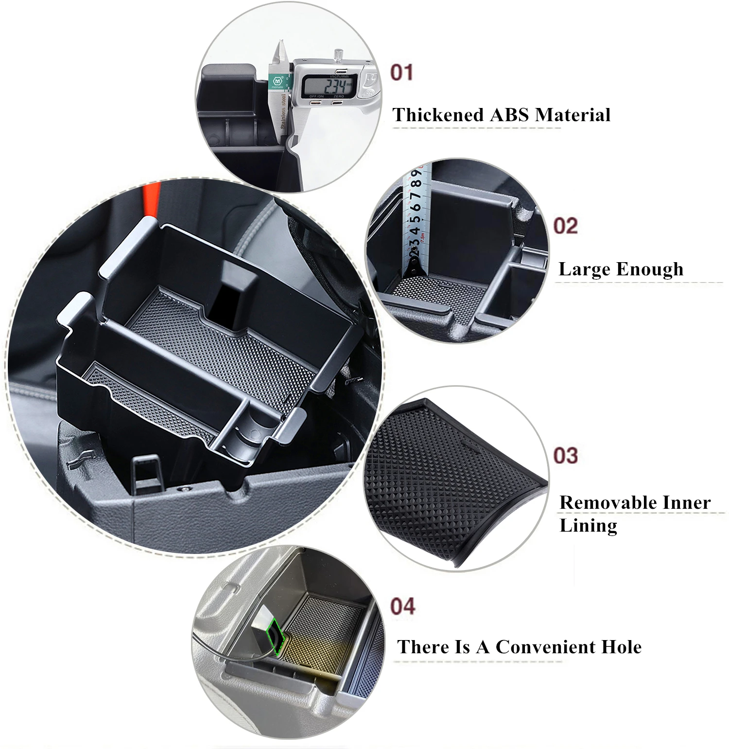 4.It's a nice neat little storage tidy by the armrest console.