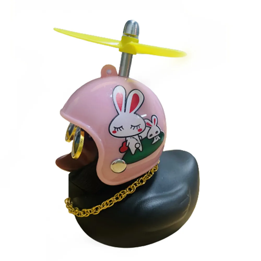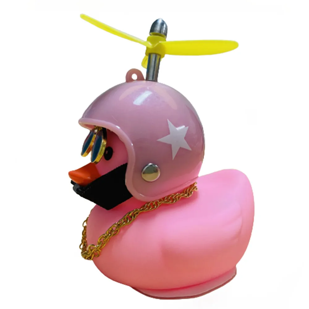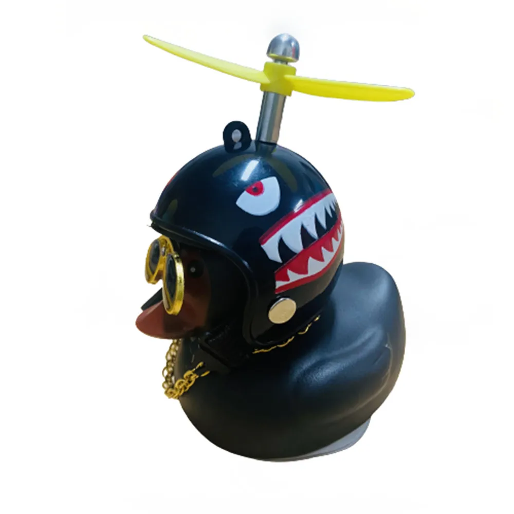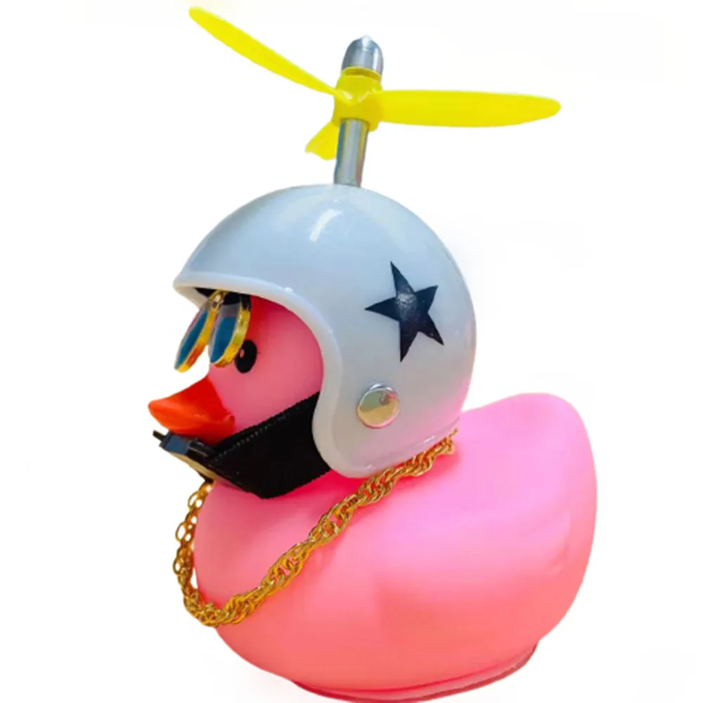 Features: It will make a sound when pinched, the material is soft, safe and durable, the duck quality is good, the raw material is safe, and it does not harm human health,With helmet, airscrew, sunglasses, metal necklace chain, super cool. Great to put it on car bonnet, rearview mirror, etc. Also can be put on kids' helmet when they are roller skating, it's really adorable.
