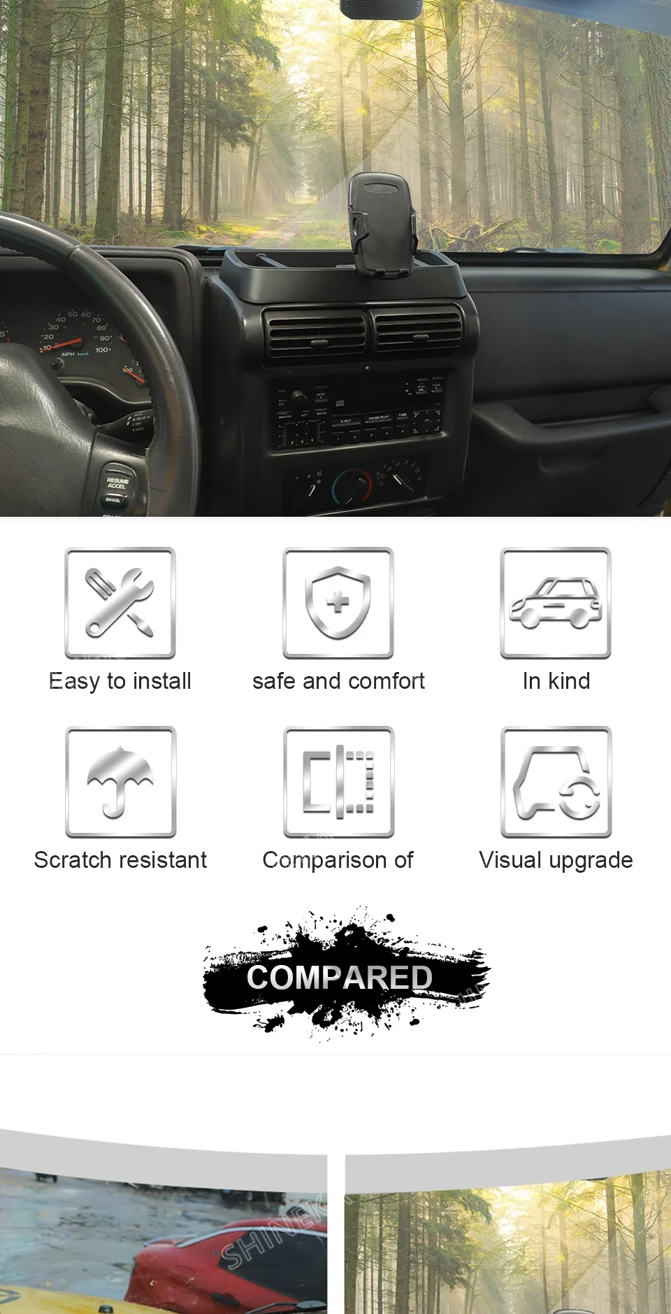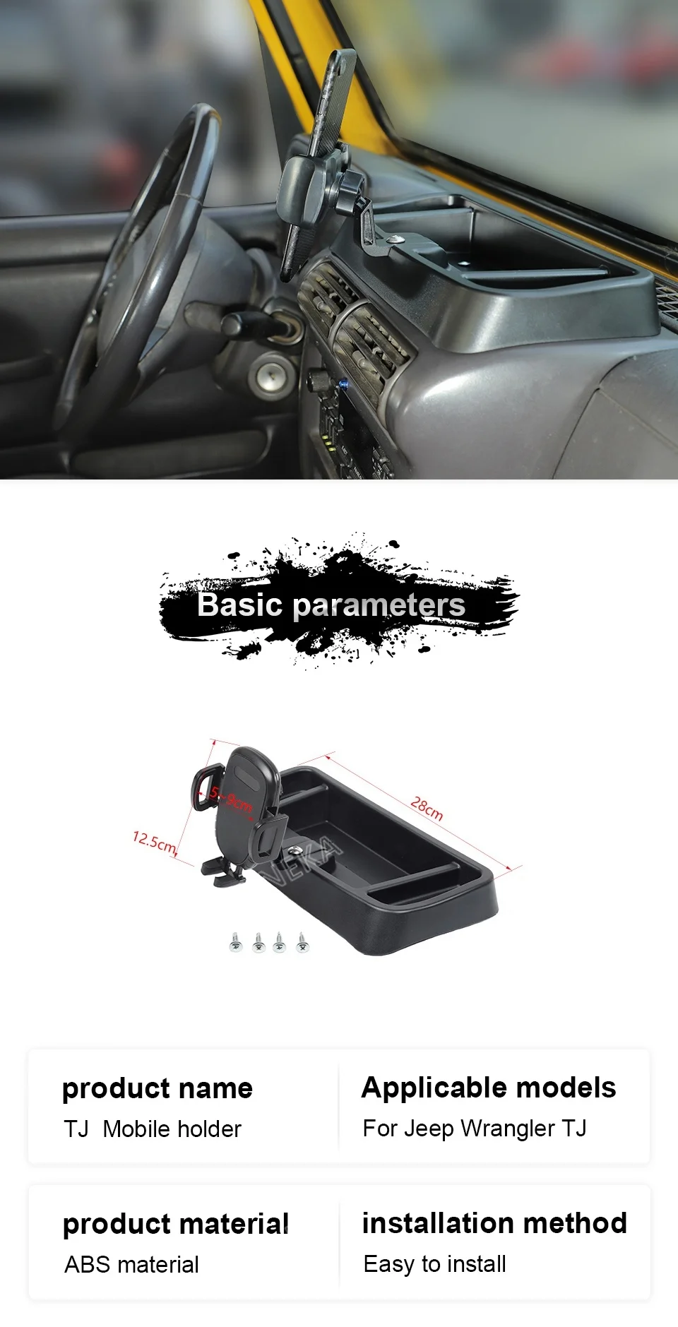 So why settle for a cluttered and disorganized interior when you can have the convenience and functionality of our phone holder bracket and storage box? Order yours today and experience the ultimate in Jeep Wrangler TJ accessories.