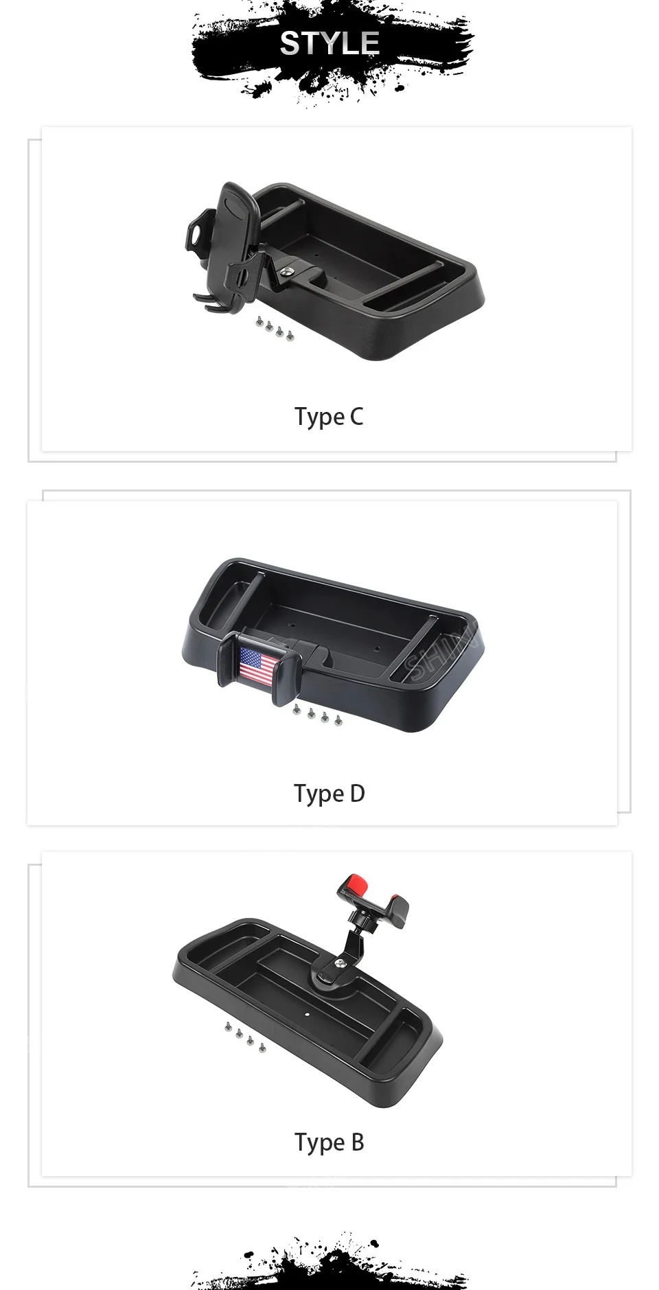 Crafted from high-quality materials, our phone holder bracket and storage box is designed to withstand the toughest conditions, ensuring that your phone and other valuables remain safe and secure no matter where your adventures take you. With its sleek and compact design, it seamlessly integrates into your vehicle's interior, giving you quick and convenient access to your phone and other small items.