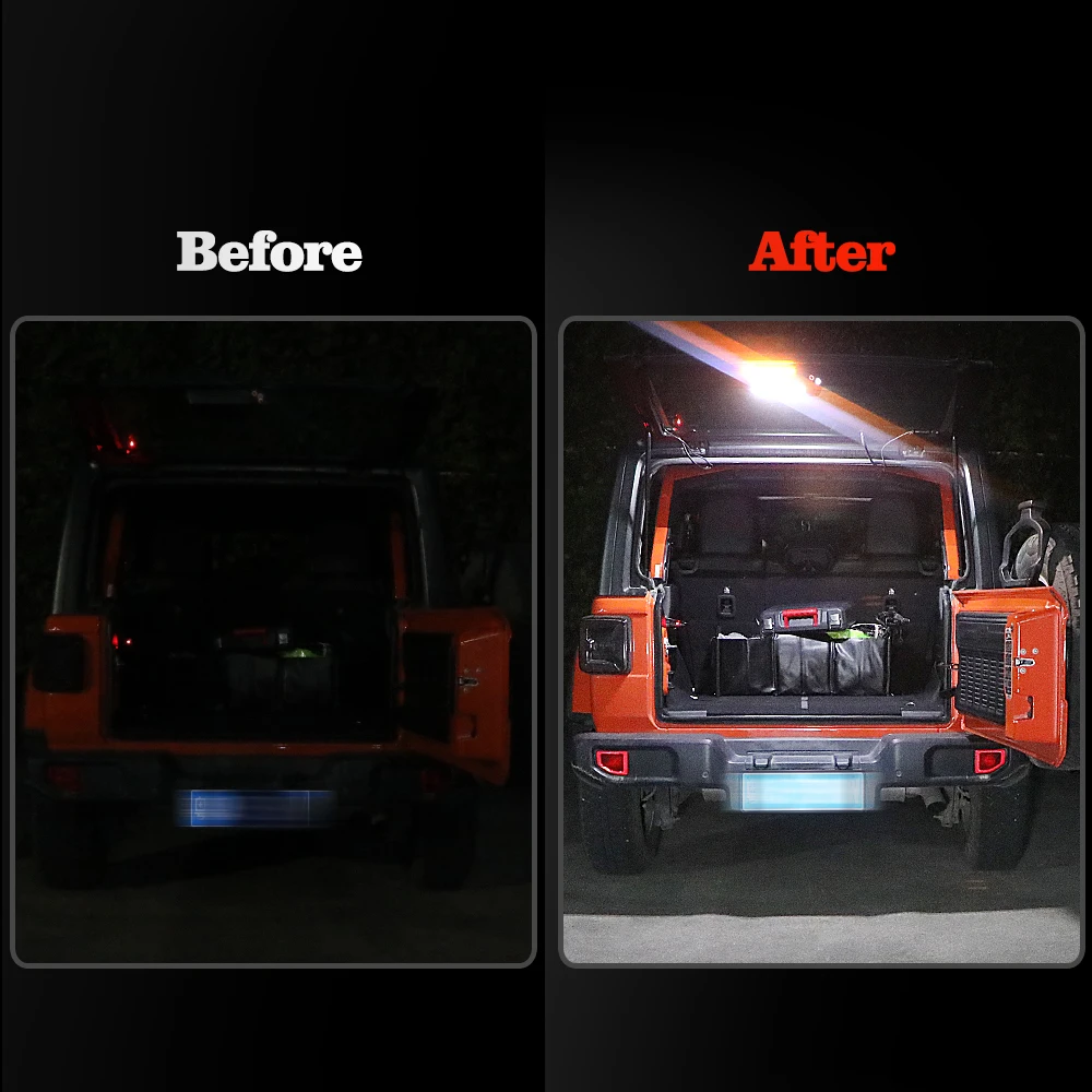 Illuminate your trunk with brilliant clarity using our high-performance LED lights. Engineered to deliver optimal brightness and energy efficiency, these lights effortlessly illuminate every corner of your Jeep Wrangler JL's trunk, ensuring easy access to your belongings, even in low-light conditions.